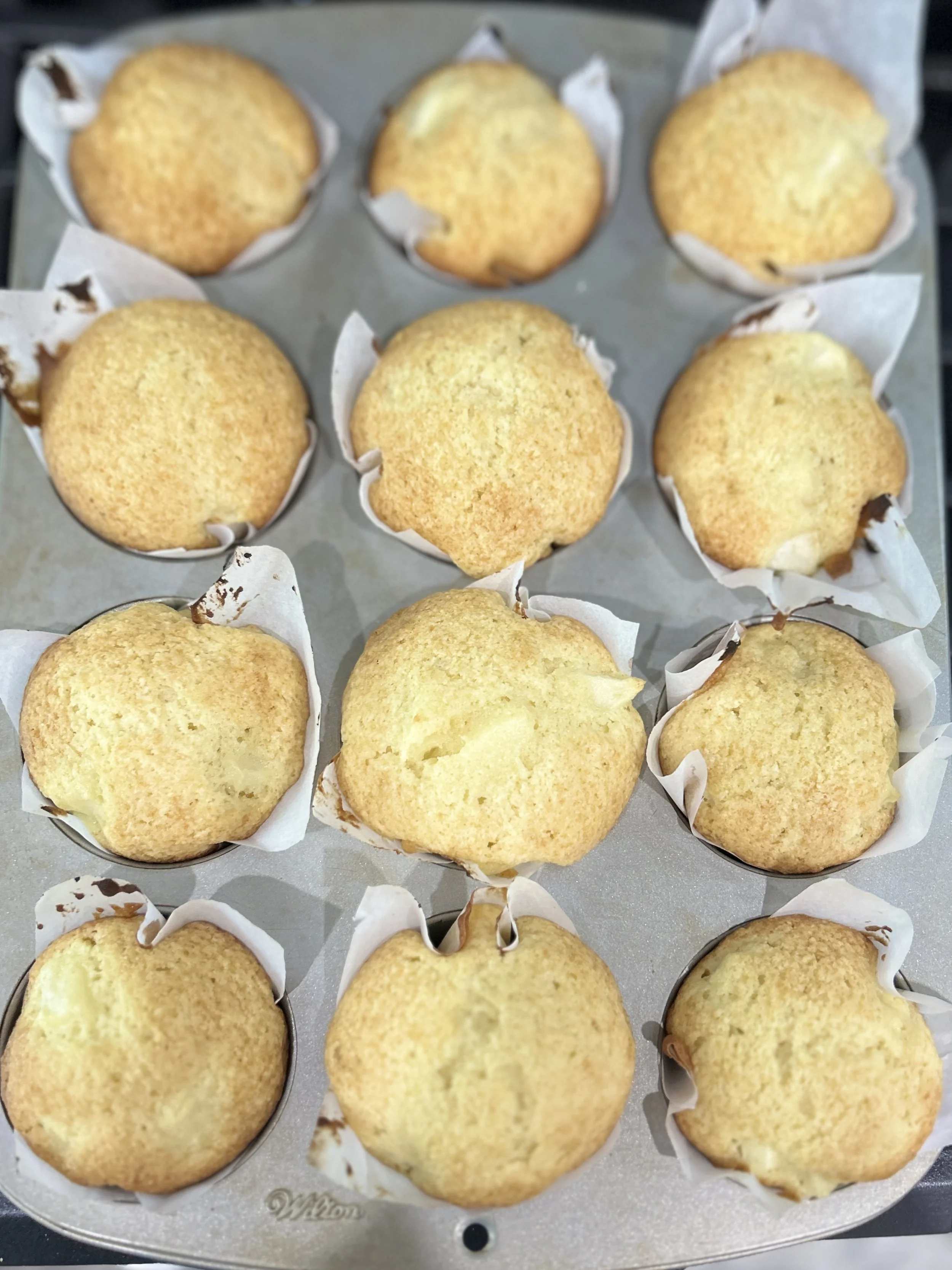 Using a cookie scoop, spoon the batter into the muffin cups. You can fill them right up to the top of the liners. You should get 12 regular-sized muffins.